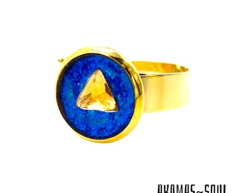 Orpheus Pinky Ring 18K Gold Plated. Egyptian Ancient Ankh Key of Life Cross Ring. Venus Ring in Tourmaline Solid Gold.
